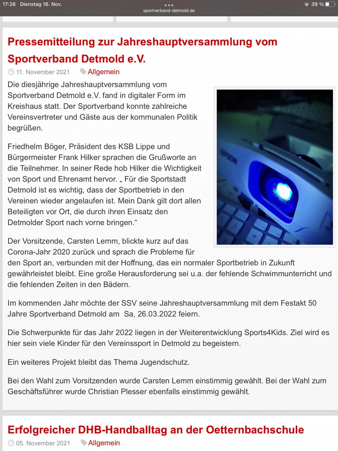 Carsten Lemm übernahm nach einstimmiger Bestätigung des Plenums den Vorsitz des Sportverbandes Detmold und ist nun oberster Repräsentant der rund 20.000 organisierten Vereinssportler in Detmold.
